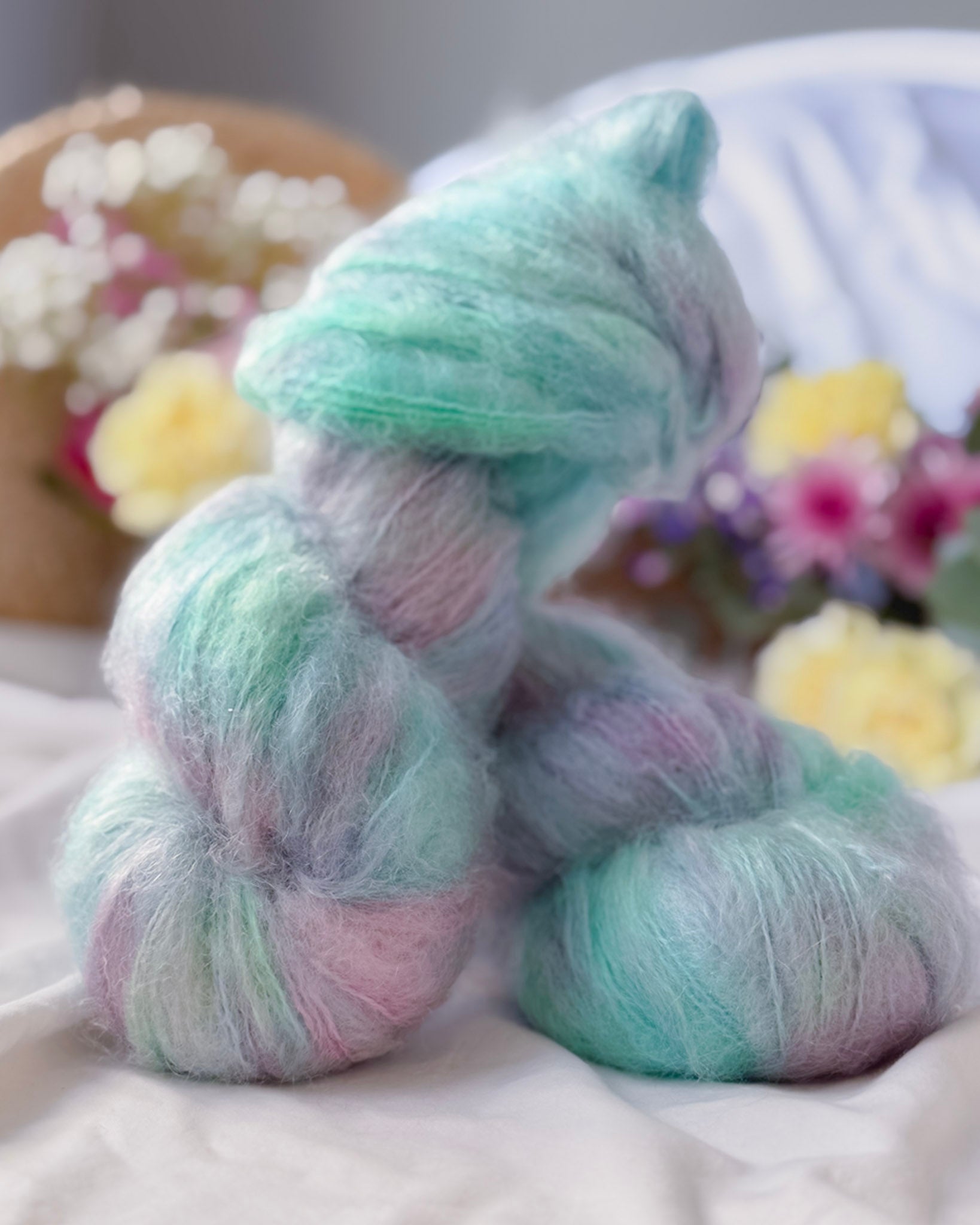 Supermyk Fat Mohair med merino. Fin alene eller i dobbel tråd.