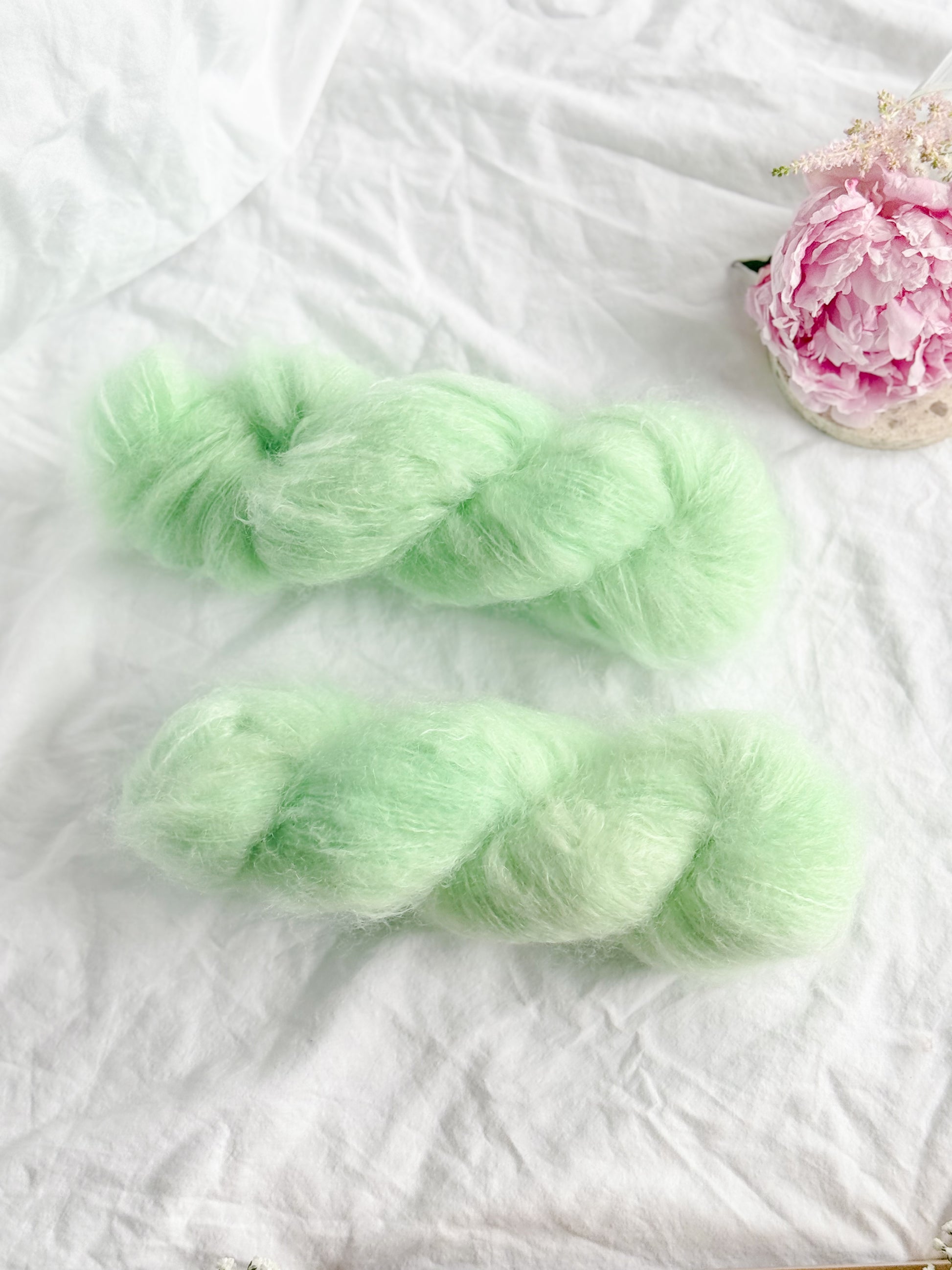Supermyk Fat Mohair med merino. Fin alene eller i dobbel tråd.