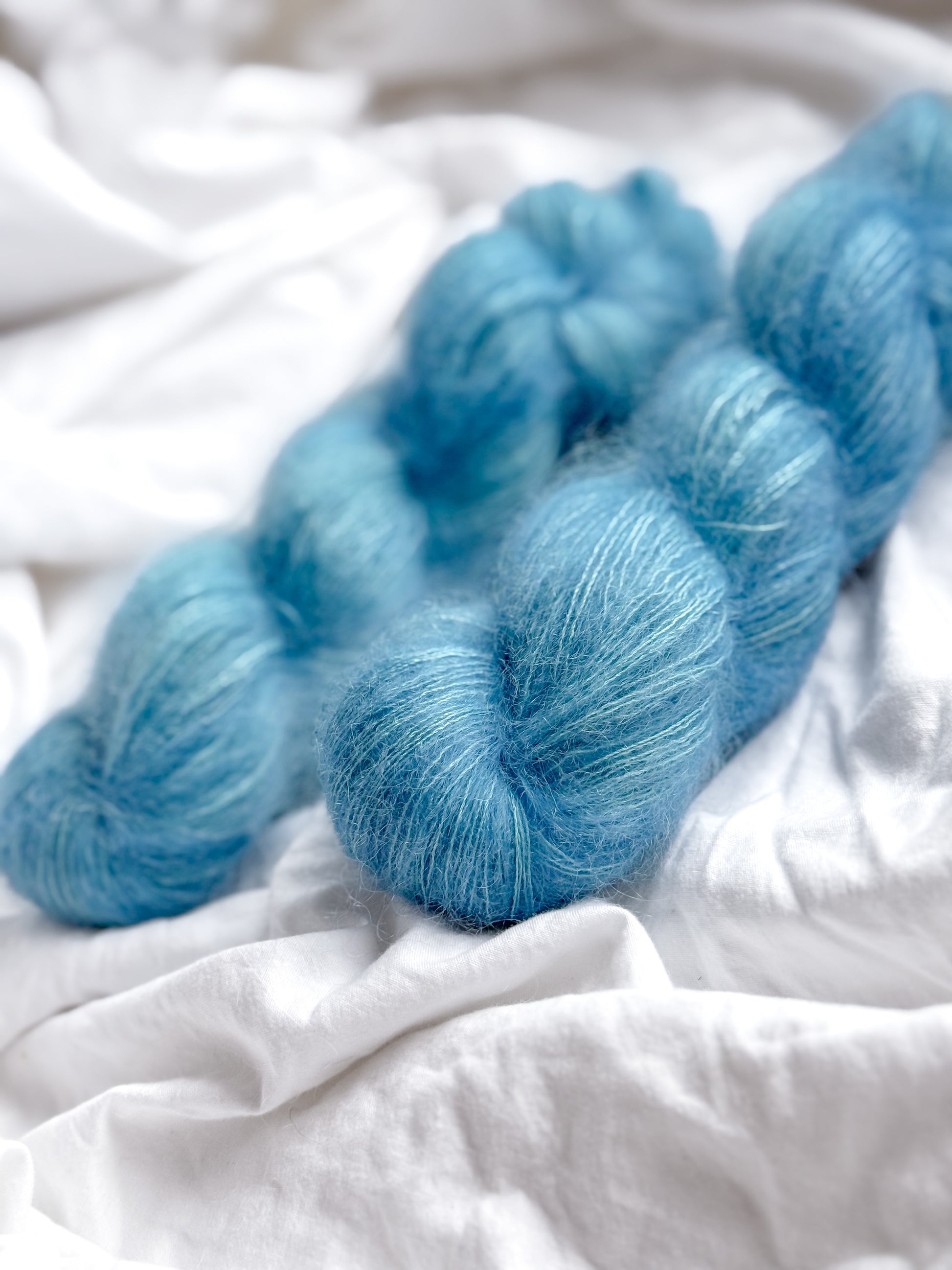 Garnet består av 64% kid mohair og 36% silke.